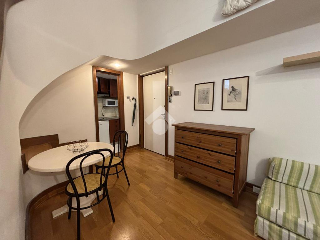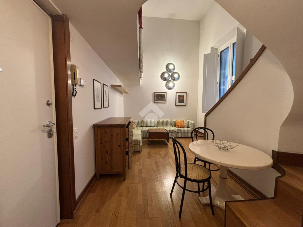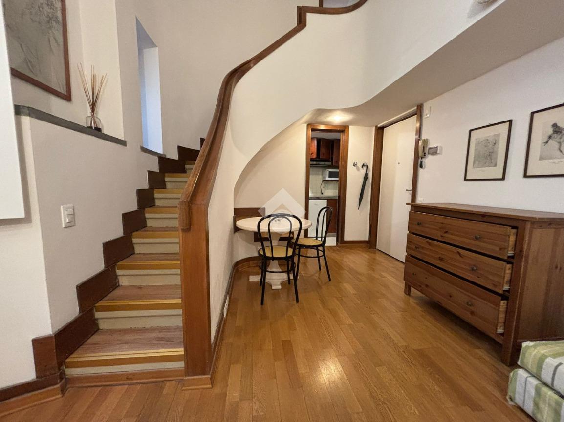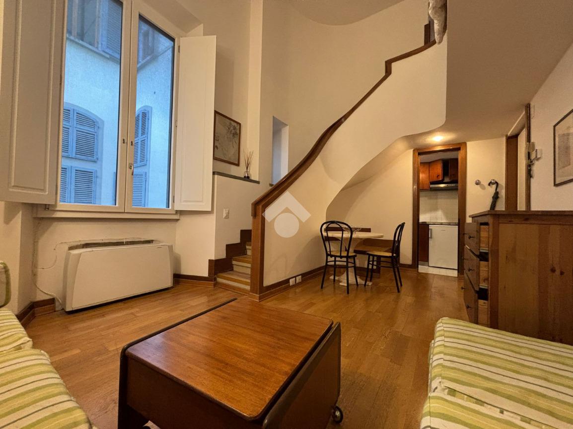 L'immobile è disposto su due livelli, al piano troviamo un ingresso, soggiorno e piccolo cucinotto. Al piano superiore tramite una scala si accede alla camera e al bagno con box doccia. Completa la proprietà un comodo ripostiglio. Arredato e libero da subito.