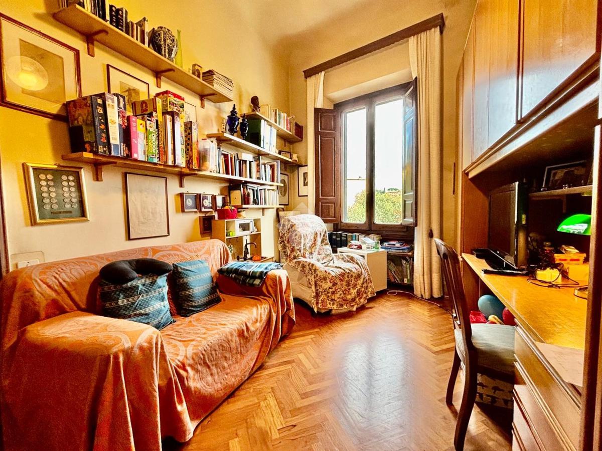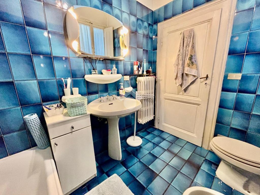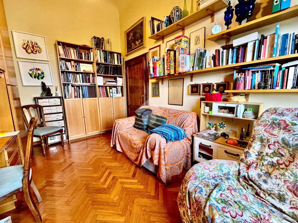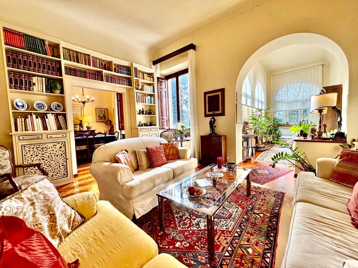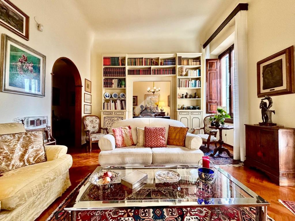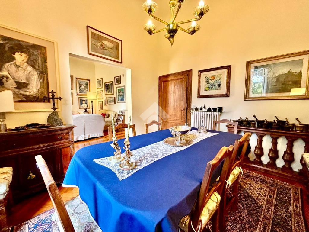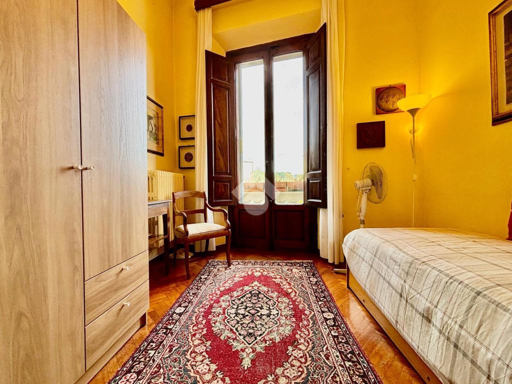 L'immobile si presenta con un ingresso, cucina, sala da pranzo, soggiorno doppio caratterizzato da ampie finestre. Le camere sono quattro di cui una con balcone, due bagni finestrati. Tramite una scala interna si accede a due stanze di servizio.