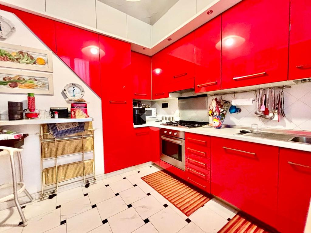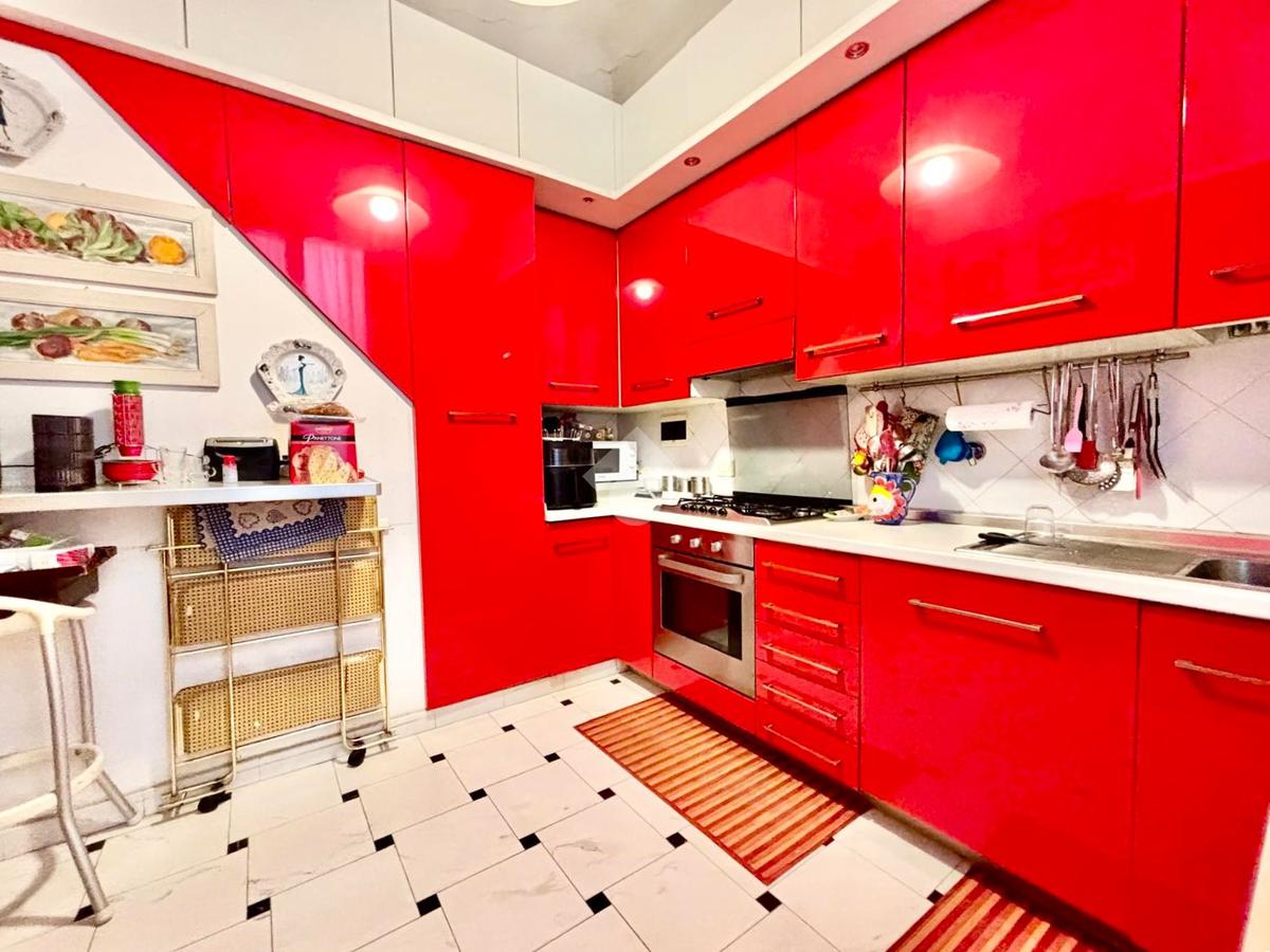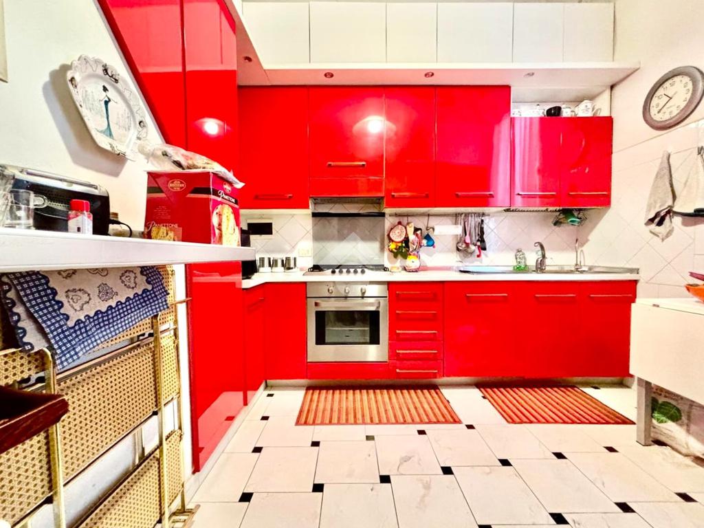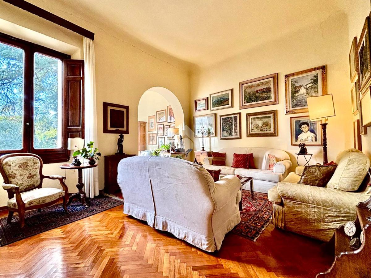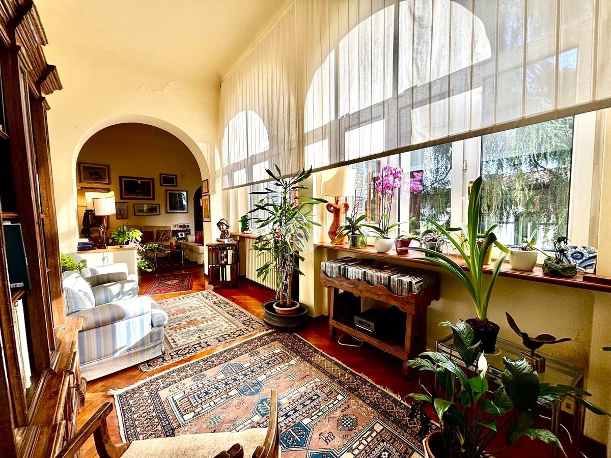 L'immobile si presenta con un ingresso, cucina, sala da pranzo, soggiorno doppio caratterizzato da ampie finestre. Le camere sono quattro di cui una con balcone, due bagni finestrati. Tramite una scala interna si accede a due stanze di servizio.