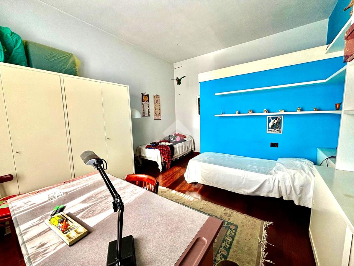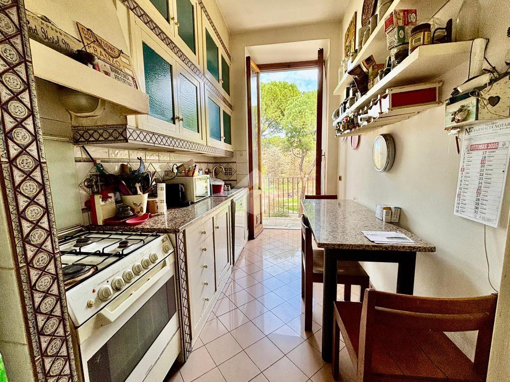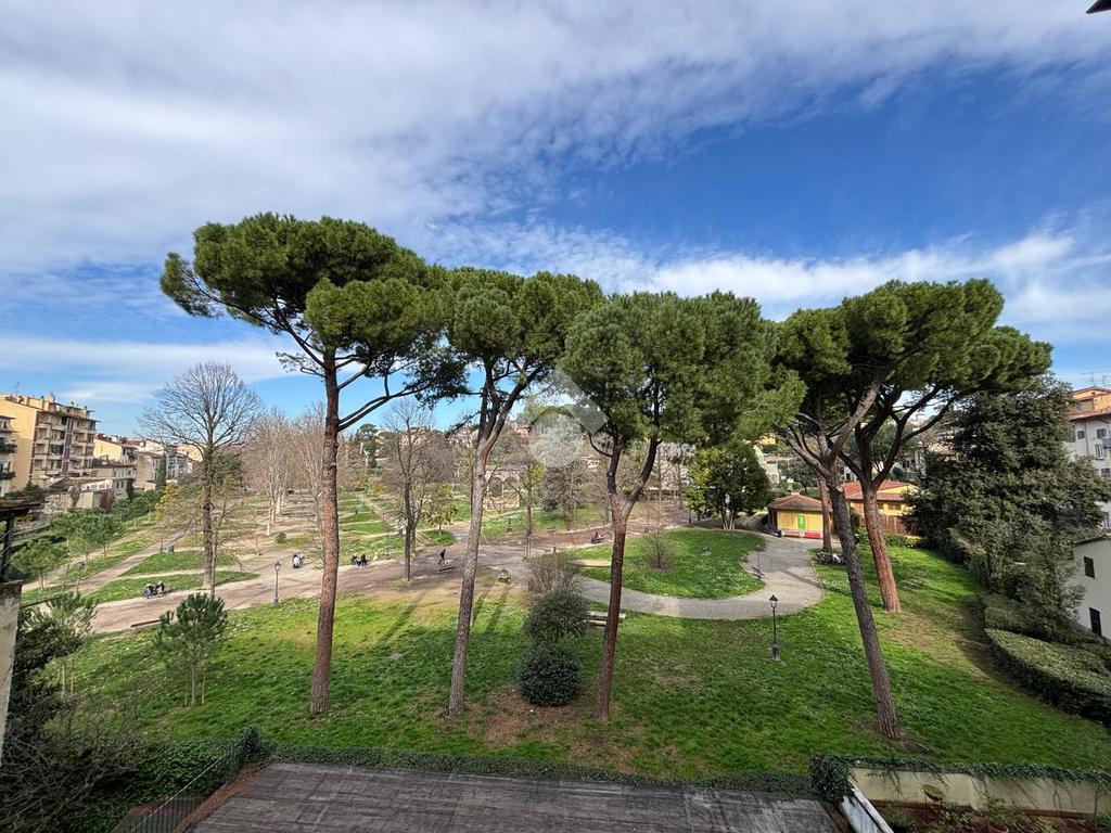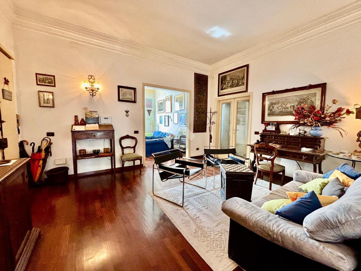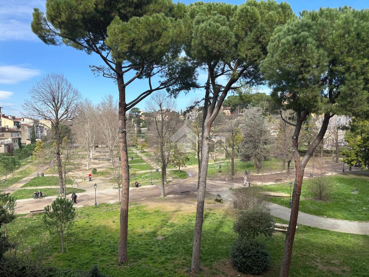 L'immobile si presenta con un ingresso arredabile che si apre sulla luminosa sala doppia che affaccia sulla via. La cucina è dotata di ampio balcone tergale sul giardino dell'orticoltura. Le camere sono tre, tutte matrimoniali. Ulteriore camera singola/studio. Tripli servizi e ripostiglio.