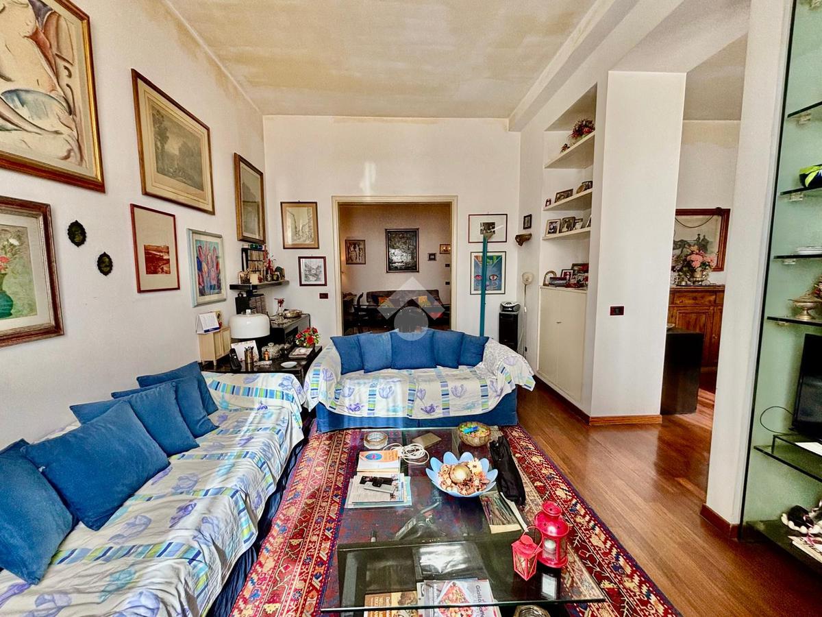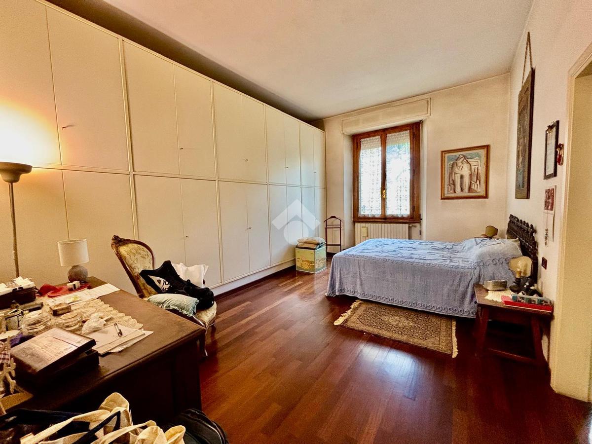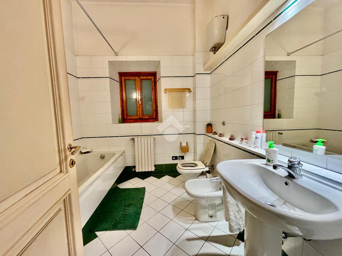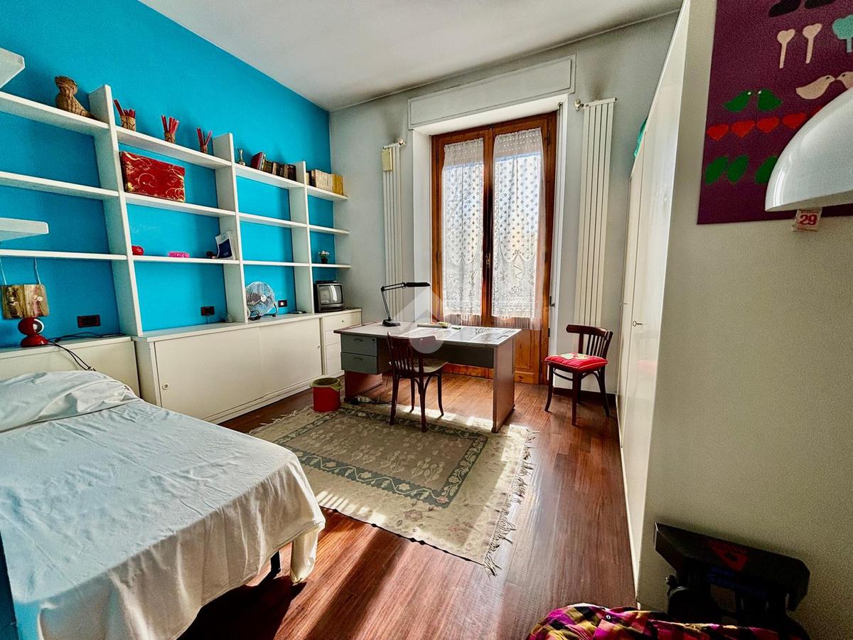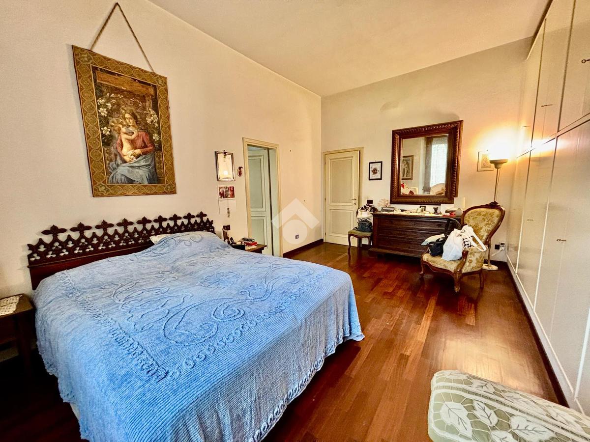 L'immobile si presenta con un ingresso arredabile che si apre sulla luminosa sala doppia che affaccia sulla via. La cucina è dotata di ampio balcone tergale sul giardino dell'orticoltura. Le camere sono tre, tutte matrimoniali. Ulteriore camera singola/studio. Tripli servizi e ripostiglio.