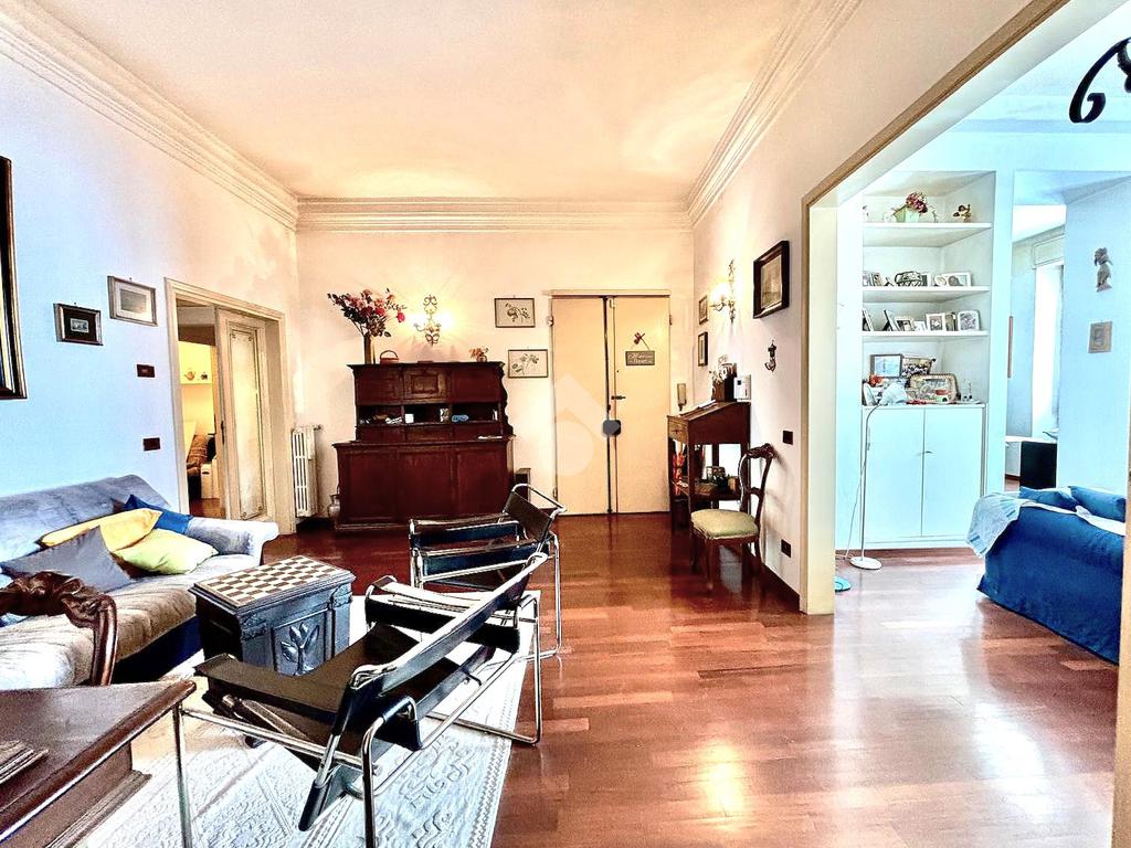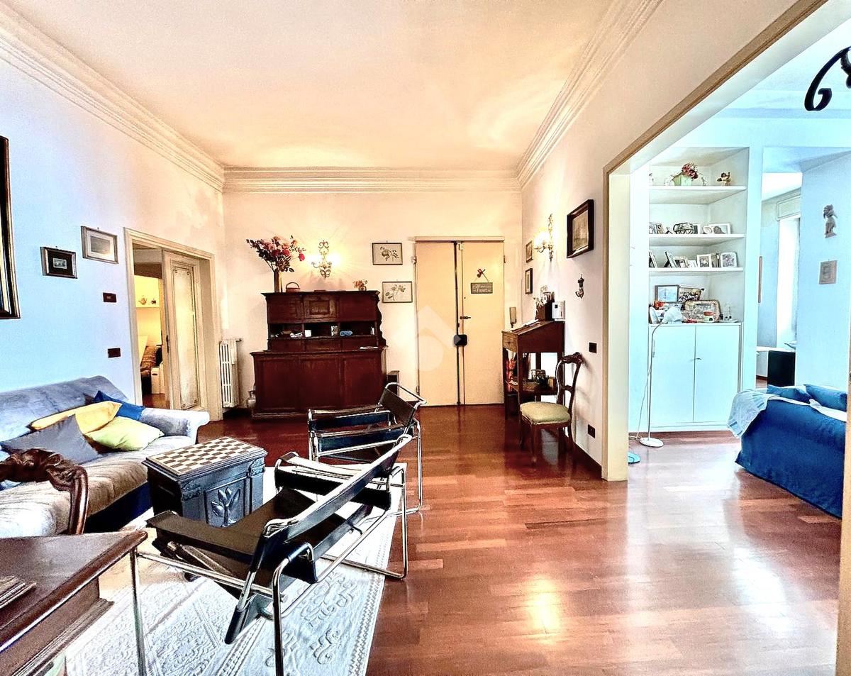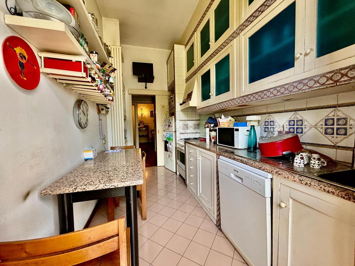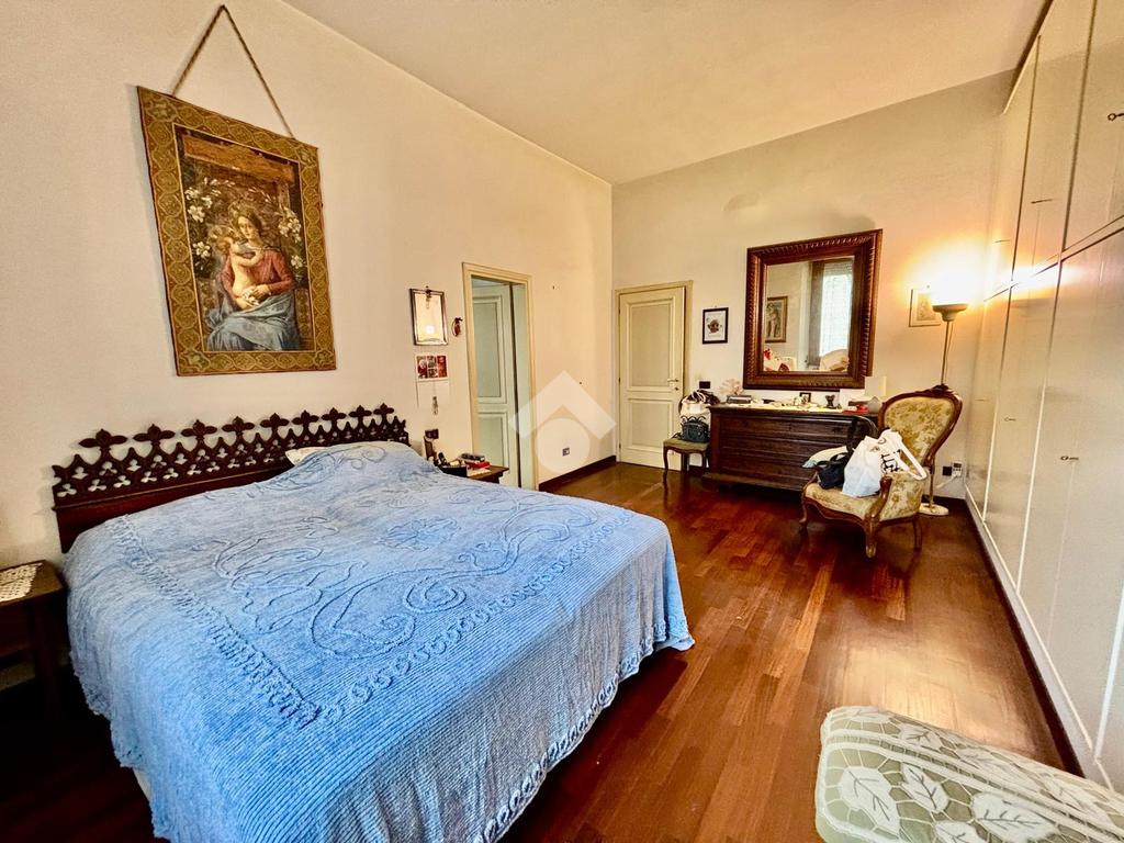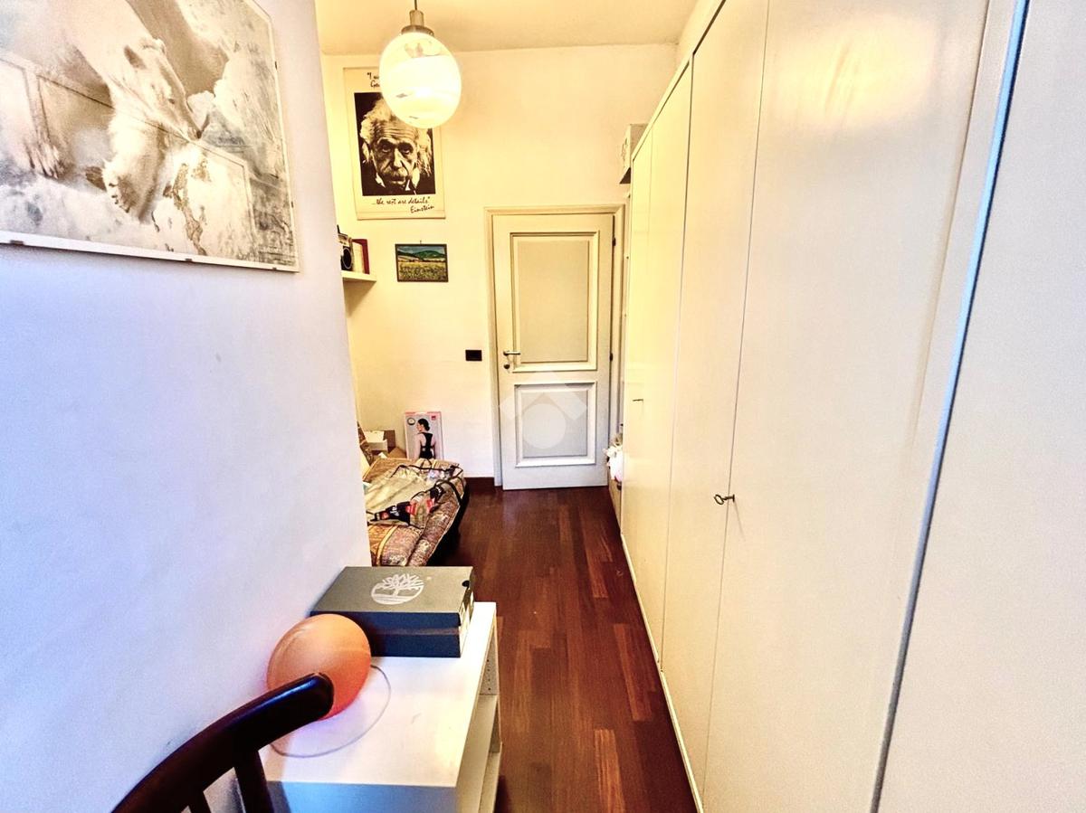 L'immobile si presenta con un ingresso arredabile che si apre sulla luminosa sala doppia che affaccia sulla via. La cucina è dotata di ampio balcone tergale sul giardino dell'orticoltura. Le camere sono tre, tutte matrimoniali. Ulteriore camera singola/studio. Tripli servizi e ripostiglio.