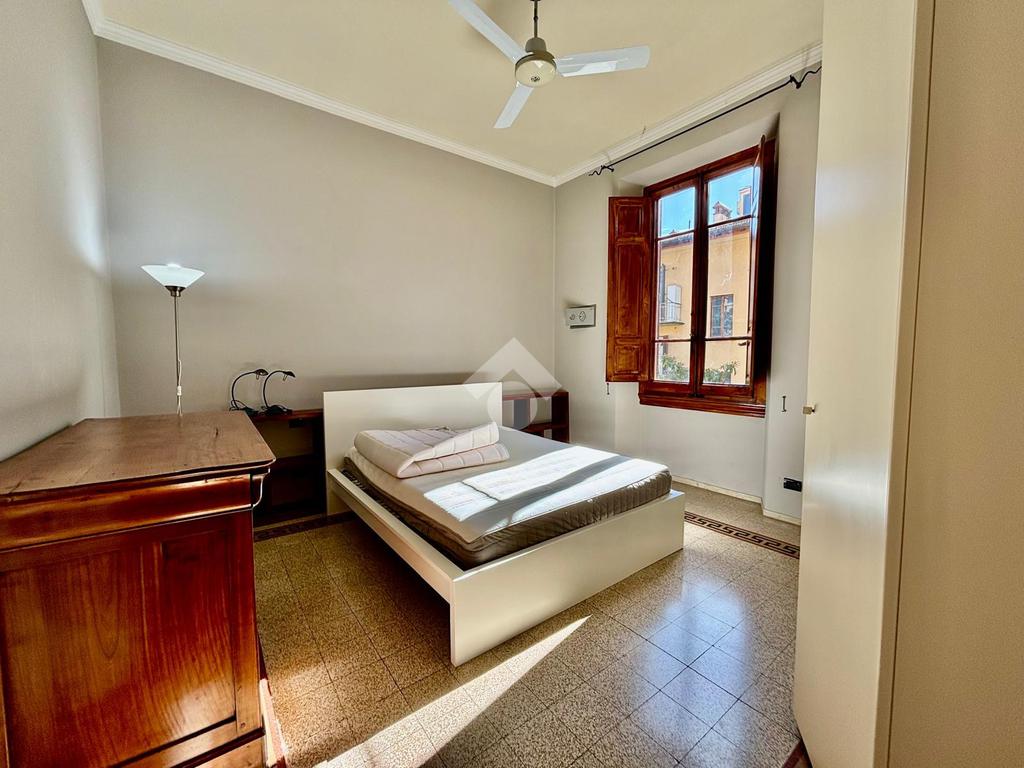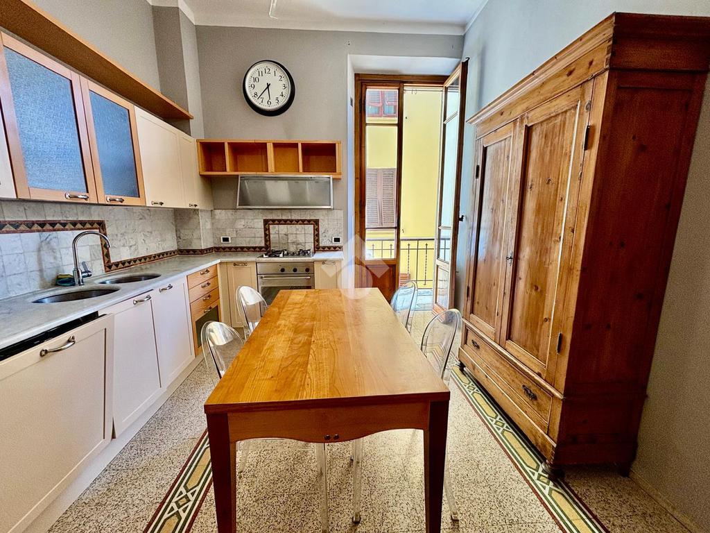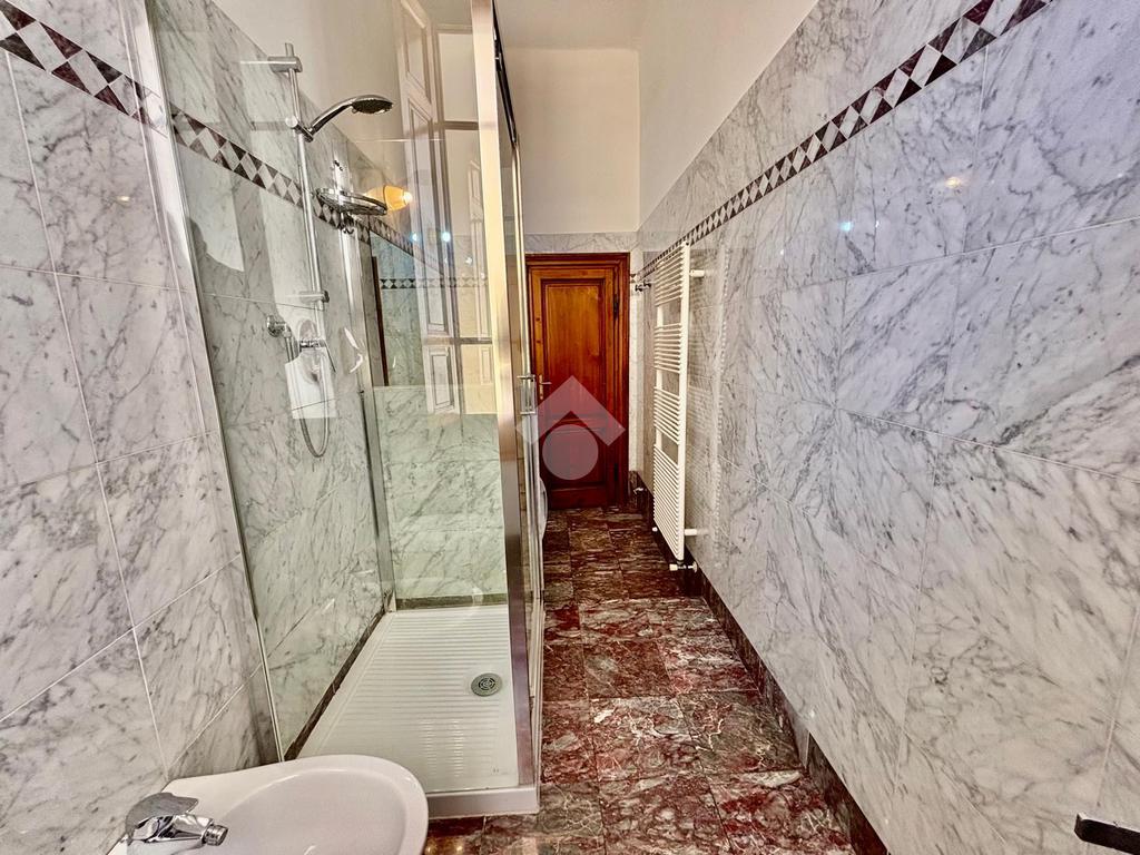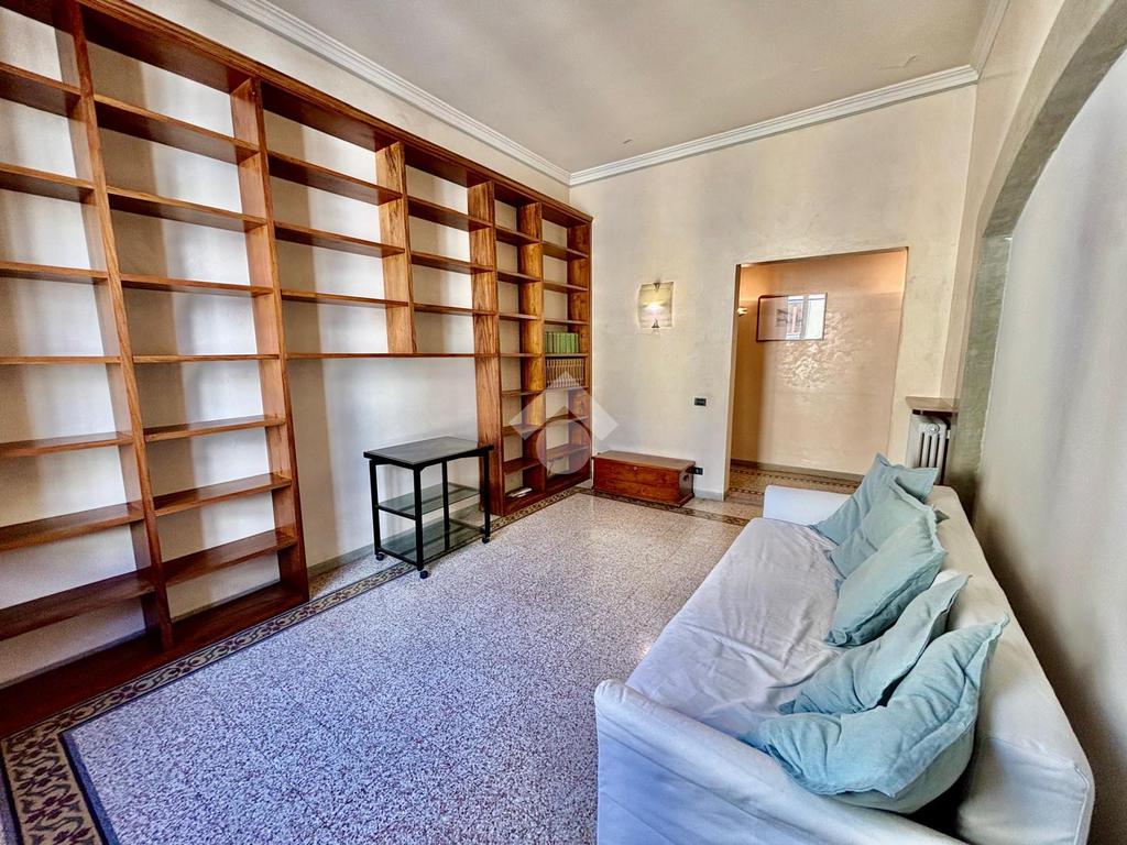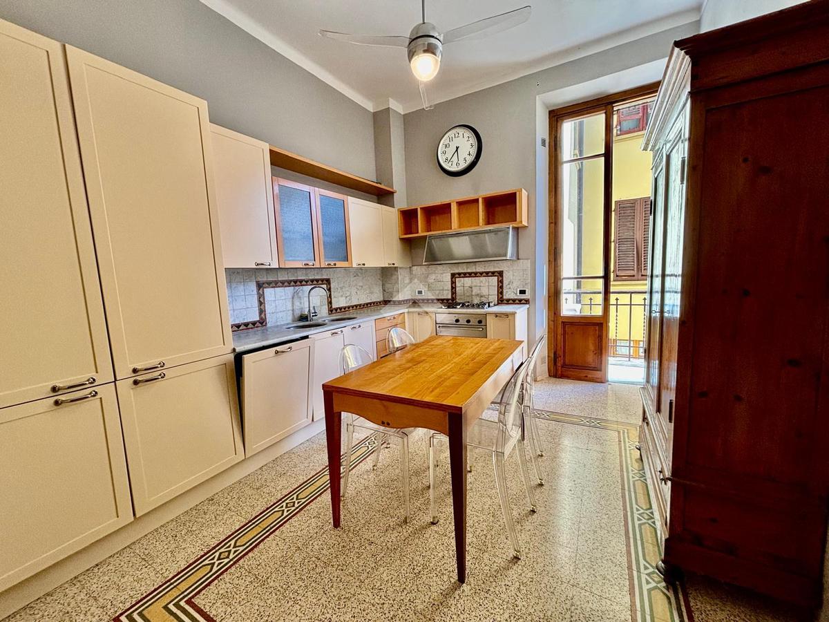 L'appartamento si presenta con un piacevole ingresso aperto sulla sala doppia con affaccio sulla via, caratterizzata da una libreria a tuuta parete in noce massello. La cucina è abitabile e dotata di balcone di servizio.